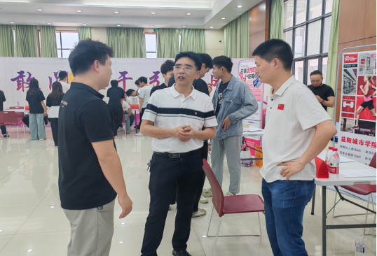 (通讯员 邓荣)2025年4月19日上午9点,湖南城市学院国产va无马网站 “体育英才,职聚未来” 2025届毕业生专场招聘会在第二办公楼三楼大学生活动中心顺利举办。本次招聘会由学校招生就业处主办,国产va无马网站承办,国产va无马网站2021级、2022级300余名学生参加招聘会,学院党委书记郭羽、院长李志宏、党委副书记匡艳群、学工办主任邓荣、分团委书记杨晶、系主任任平现场指导。