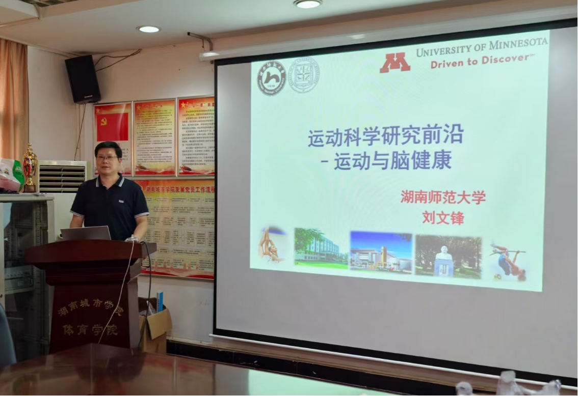 (通讯员 龚莹莹)2025年6月23日,国产va无马网站特邀湖南师范大学博士生导师刘文锋教授开展学术专题讲座,讲座的主题为《运动科学研究前沿——运动与脑健康》。讲座由国产va无马网站院长李志宏主持,学院全体教师参加。