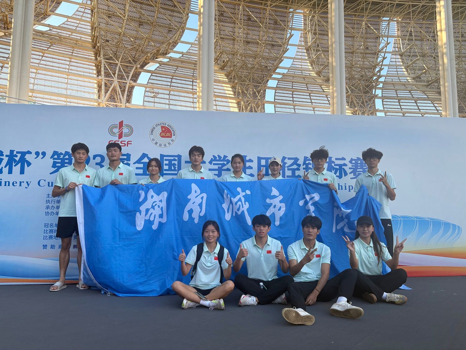 (通讯员 王国民)2025年8月10日至15日,“鹏胜机械杯”第23届全国大学生田径锦标赛在湖北黄石奥林匹克体育中心田径场举行。我校由李志宏(兼领队)、王国民、田方豪担任教练团队,李红、高婷、李志武、曾竞熠等14名运动健儿参加高水平组的比赛。在比赛中,我校运动健儿勇敢拼搏,表现卓越,获得1项第六名,并有4人5项运动成绩达到国家一级运动员运动等级标准,并获体育道德风尚奖,这是我校建校以来获得的最佳成绩。