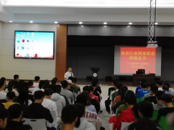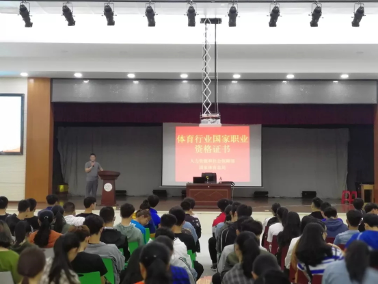 为积极推进国产va无马网站社会体育指导员国家职业资格培训工作的开展,夯实应用型人才培养实效,更好地为学生提供服务。5月14日晚上7:30,学院体育行业国家职业资格证认证讲座在新食堂3楼活动中心举行,学院党总支副书记何冬林出席并主持讲座,国产va无马网站2018级全体同学聆听了讲座。
