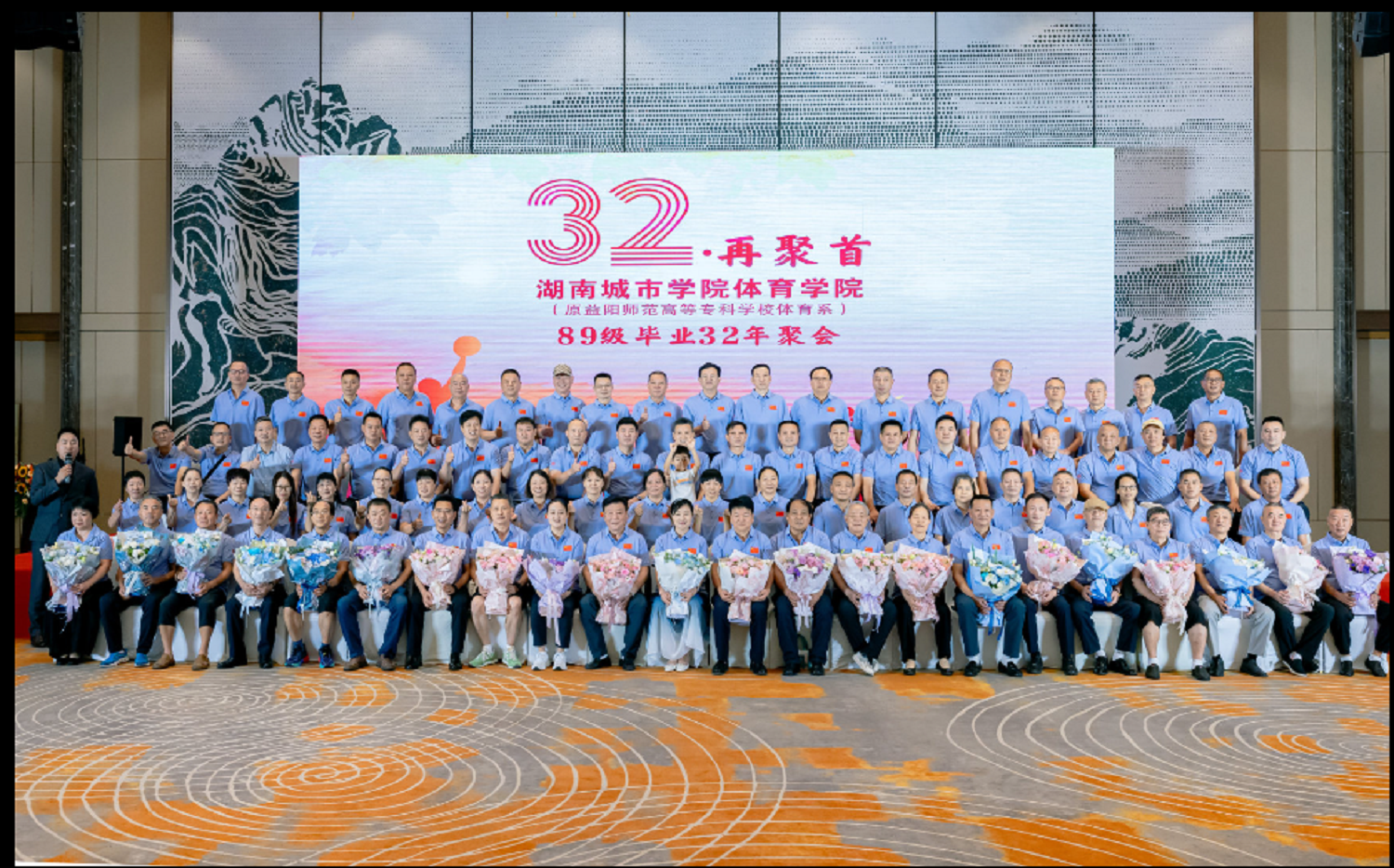 (通讯员 郭羽)忆往昔,传道解惑春风化雨润桃李;看今朝,扬帆远航春华秋实塑英才。2024年7月20日至21日,湖南城市学院国产va无马网站(原益阳师专体育系)89级毕业三十二周年聚会在长沙大汉金桥华美大广场酒店隆重举行。学校党委书记汤放华教授、湖南开放大学校长、教育部全国高等学校体育教学指导委员会委员、博士生导师杨斌教授(89级甲班班主任)、中国学生联合会舞龙舞狮分会创始人、世界休闲组织中国分会民俗休闲专业委员会主任、中南大学黄益苏教授(原益阳师专副校长)、教育部全国高等学校体育教学指导委员会委员、湖南省高等学校体育教学指导委员会副主任,湖南工业大学刘亚云教授、湖南农业大学二级教授唐吉平(89级年级班主任)、奥运羽毛球冠军长沙师范学院龚智超教授、学校校友办主任薛铁军、国产va无马网站党委书记郭羽、院长李志宏、副院长许进、宁乡市人民政府二级调研员88级王坚、湖南工业大学国产va无马网站教授90级阳文胜、长沙市雅礼实验中学副校长91级孔映波、长沙师范学院体育科学学院教授90级郭剑华、湖南师范大学教授92级周振华、长沙市望城区新世博寄宿制小学副校长93级彭智勇;湖南省交警总队秩序支队副支队长91级杨光辉、周南实验中学副校长92级魏建晖、长沙县教育局副局长94级杨伏梅、长沙职业技术学院体育课教学部93级陈勇、长沙市天心区艺术体育中心体育教研员95级张川、长沙市协均中学体育教研组组长95级谭刚、长沙师范学院学工部部长96级周强猛,当年任课老师以及来自全国各地的校友120余人欢聚一堂,一起分享学校和学院的巨大变化,畅谈学院和个人的发展喜悦。