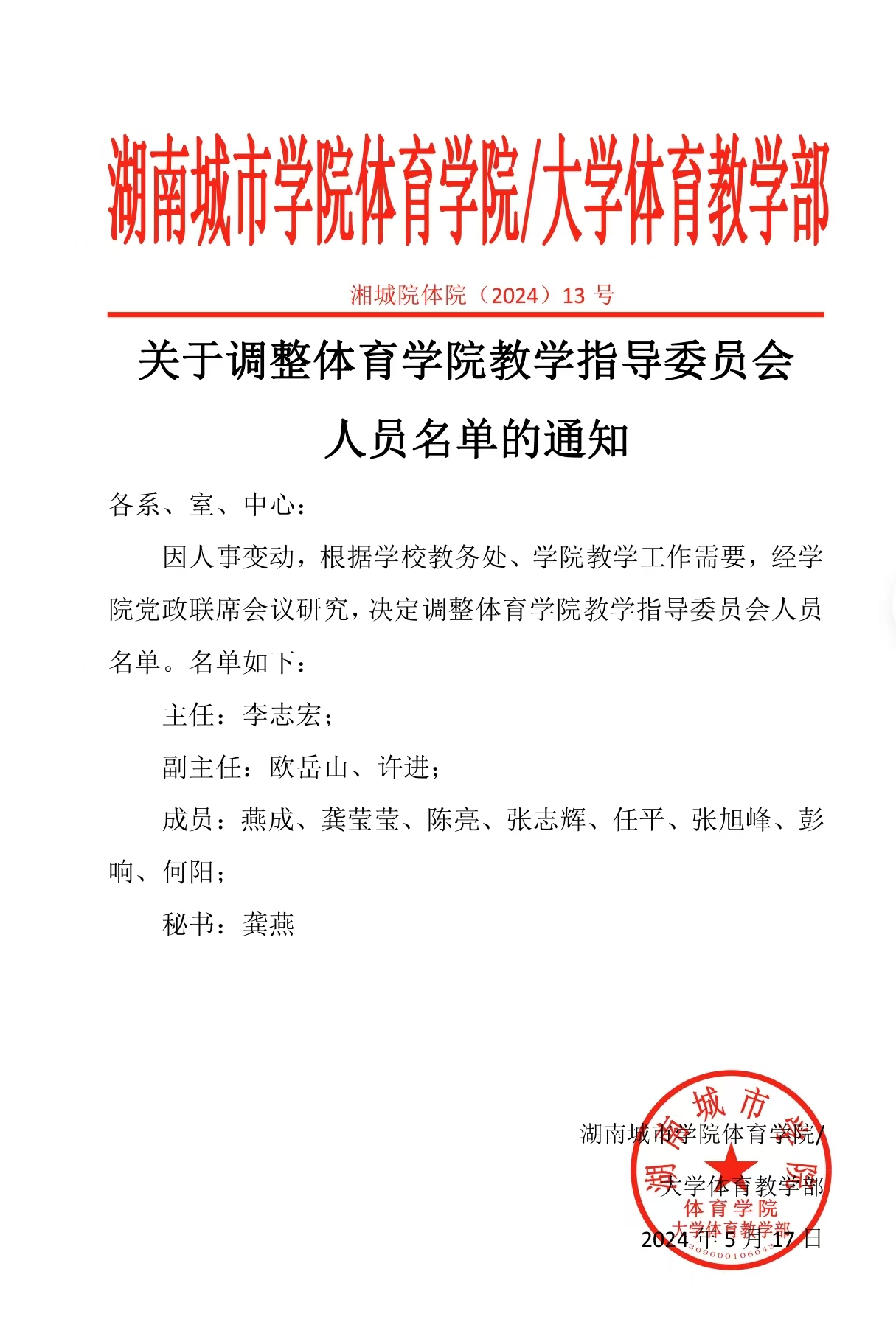 关于调整国产va无马网站教学指导委员会人员名单的通知