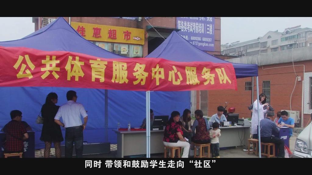 2015年5月,由国产va无马网站实验室主任汤华副教授带队,2012级社会体育专业学生为期一个星期的社会服务活动在学校北门、金银山街道、益阳市一中等学校和社区展开,主要针对社区居民进行体质监测、健康监测以及健身指导,主要测试项目包括:动脉硬化风险测试、血压、血糖检测、体成分、骨密度、平衡功能测试等。针对个别人群还制定了运动处方。在整个测试过程中,既让学生得到了实践锻炼,将所学知识运用到社会实践当中去,同时也让社区居民对自己的健康状况有了一定了解,并给予他们设计了运动处方,为运动促进健康提供了指导和帮助。