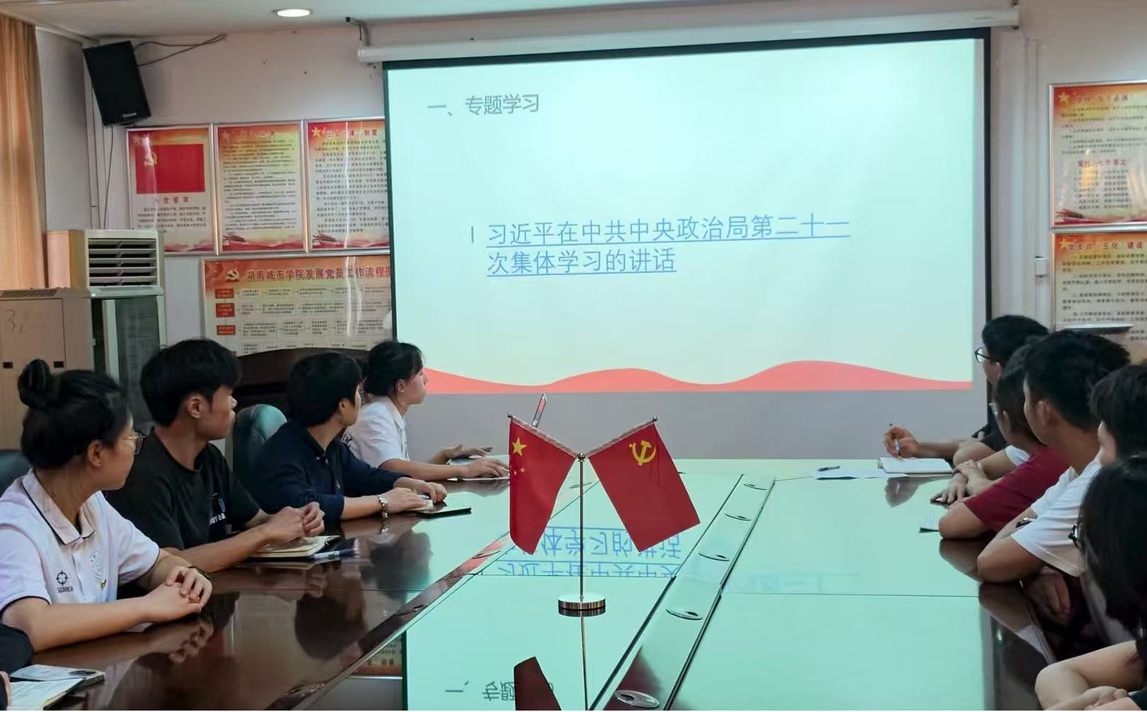 罗嘉欣同志作为主讲人精炼解读了中共中央政治局第二十一次集体学习精神以及习近平总书记山西考察讲话精神。要求全体学生党员提高认识,增强党性,规范权力运行,从严监督执纪,切实履行管党治党责任。在学习听取习近平总书记山西考察讲话中,了解到我们推进转型发展要“坚定”和“有序”,要树牢正确政绩观,发扬钉钉子精神。