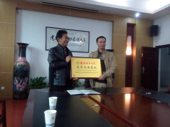 2015年11月9日,国产va无马网站党总支副书记郭羽和辅导员老师一道前往望城区第二中学,代表学校与该校副校长刘满和签订了湖南城市学院“优质生源基地”协议书,并进行了授牌仪式,致此,望城区第二中学成为了我校的优质生源基地。