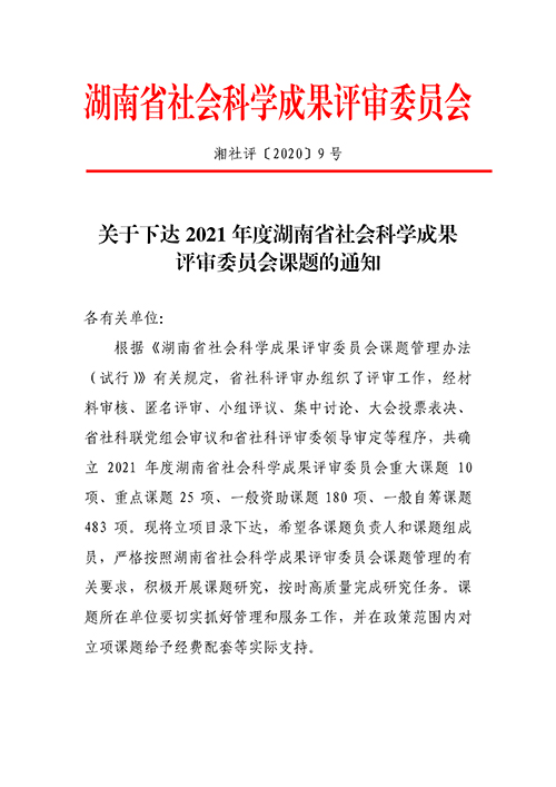 2021年度湖南省社会科学成果评审委员会课题立项目录.doc