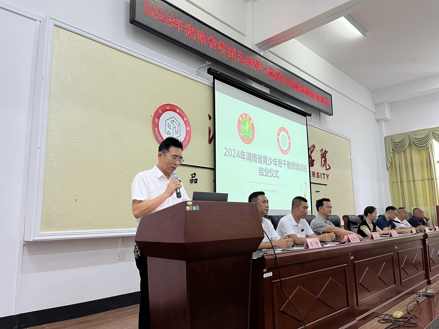 (通讯员:欧岳山)由湖南省校园足球工作办公室主办,湖南城市学院承办的2024年湖南省校园足球骨干教师专项培训圆满结束。7月9日上午在电信楼视频会议室举行了结业仪式。国产va无马网站党委书记郭羽、院长李志宏、副院长许进、副院长欧岳山以及讲师团的专家出席,仪式由副院长欧岳山主持。